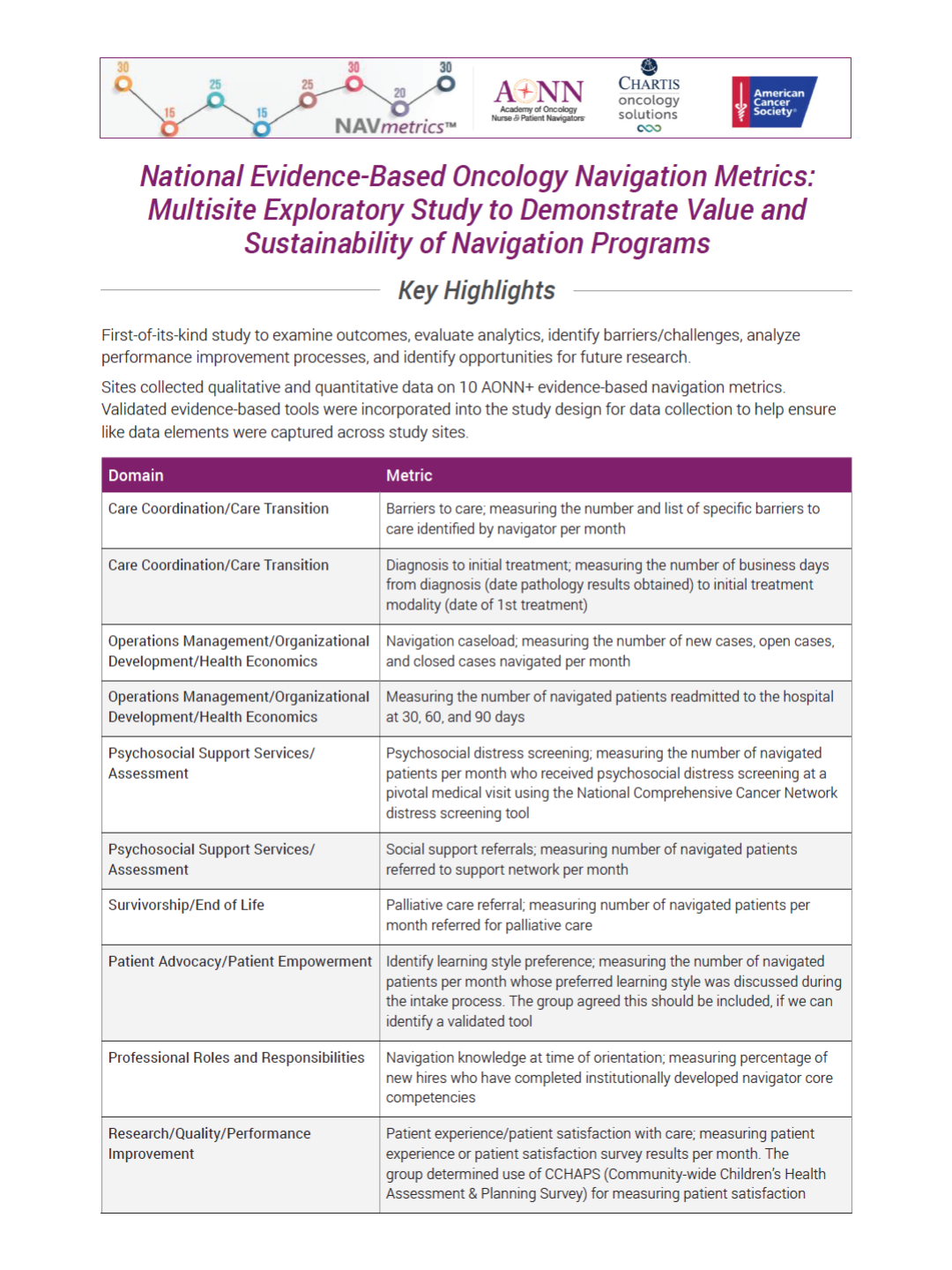 AONN+ Evidence-Based Navigation Metrics