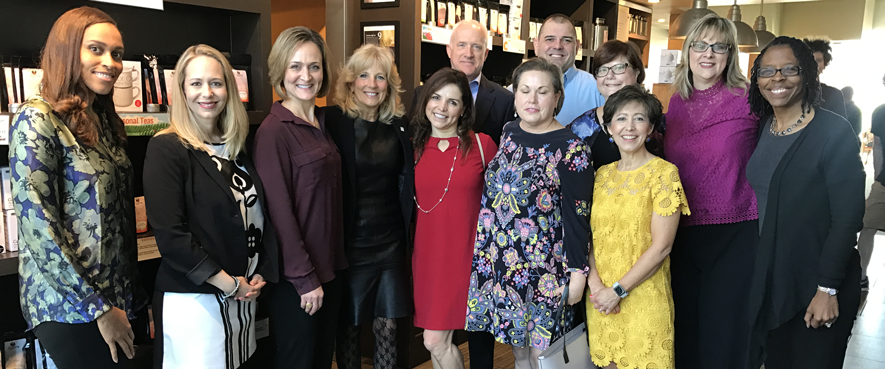 CRANBURY, NJ – The Academy of Oncology Nurse & Patient Navigators (AONN+) had a strong presence at the first of the Biden Cancer Initiative’s “Conversations with Dr. Biden,” held on March 10, 2018, in Austin, Texas. Hosted by Jill Biden, MEd, Co-Chair of the Biden Cancer Initiative, these conversations are being held across the country in intimate community settings to provide members of the patient support network — families, caregivers, patient navigators, and others — with the opportunity to share their perspectives on the cancer journey.