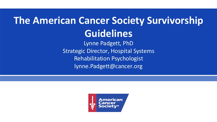 This is part two of a free, interactive three-part webinar series on Survivorship hosted by the American Cancer Society. The webinars will include information about the Commission on Cancer survivorship care planning standard and the role of National Cancer Database data, review of the newly released American Cancer Society cancer survivorship care guidelines and a presentation by healthcare systems implementing survivorship programs.